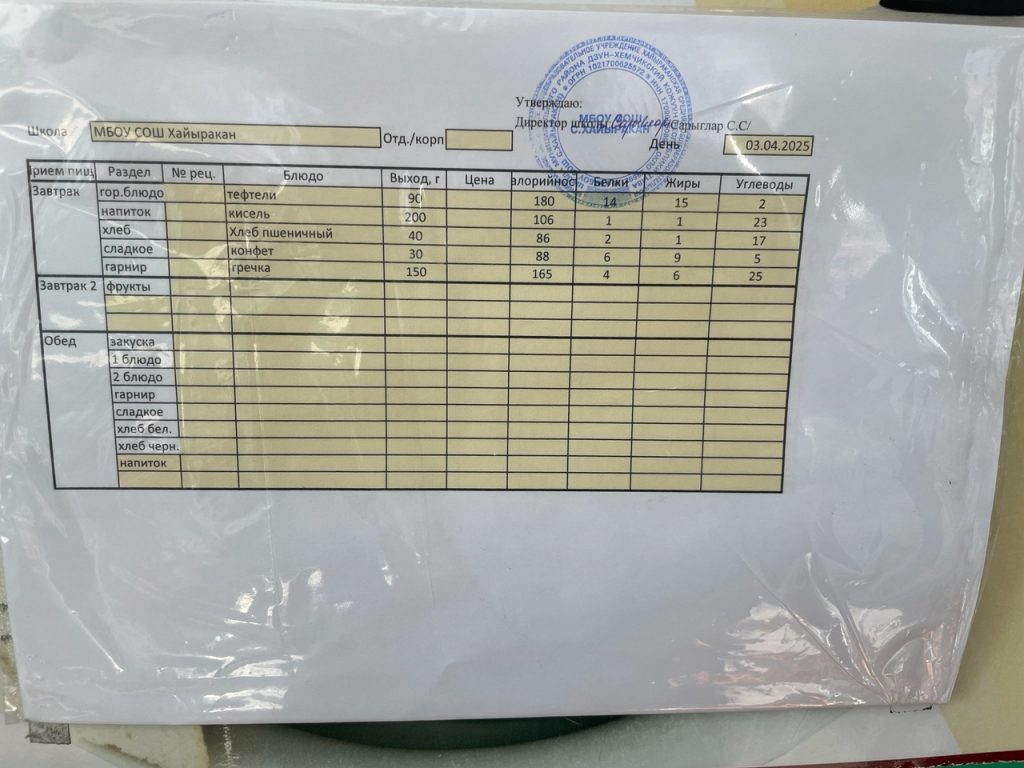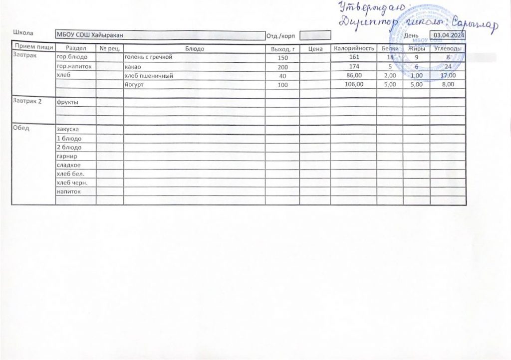 Утвержденное меню на 03 апреля 2024 года
