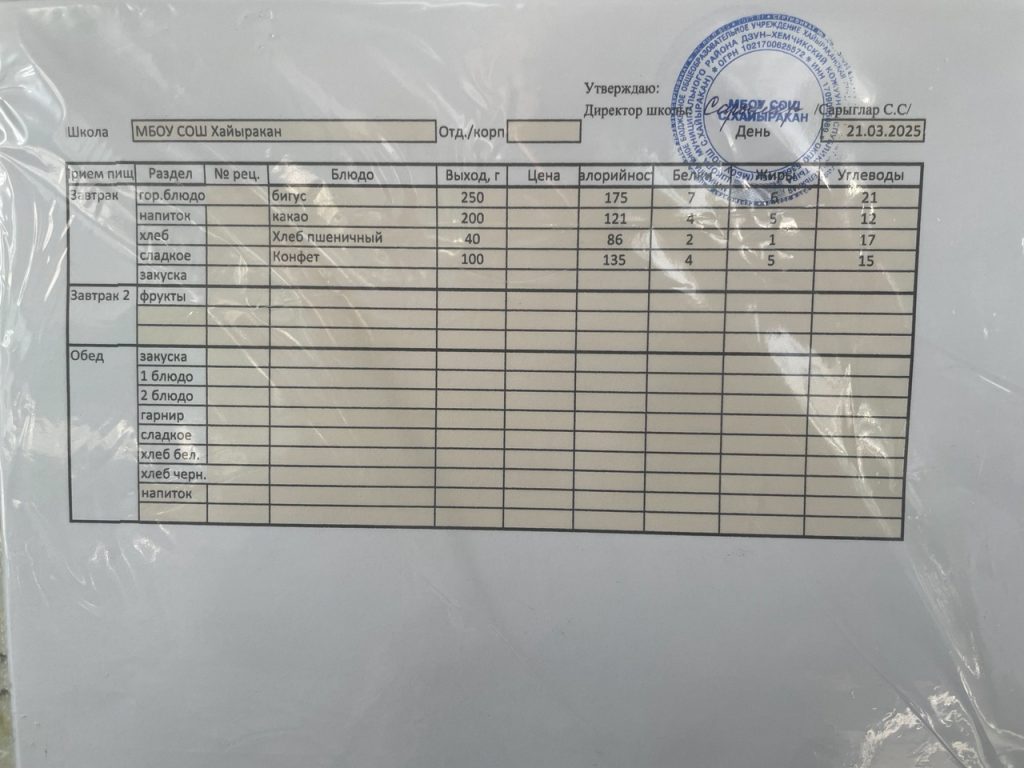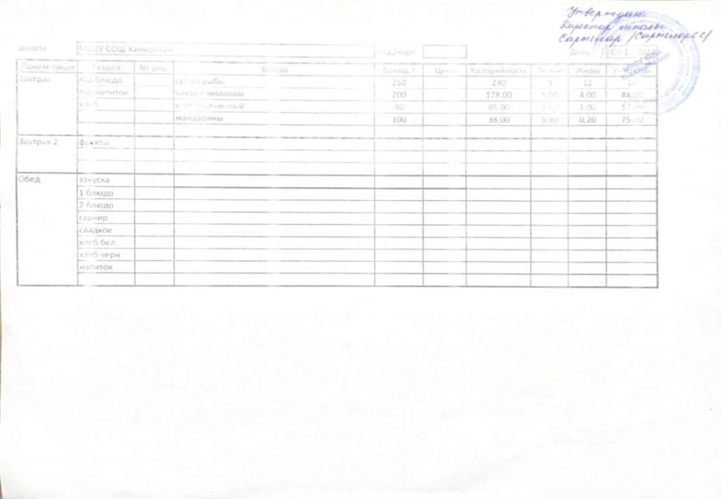 Утвержденное меню на 21 января 2025 года