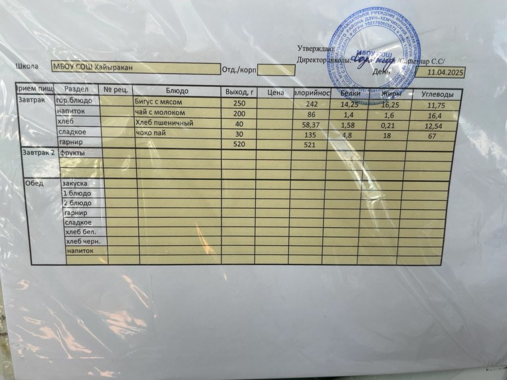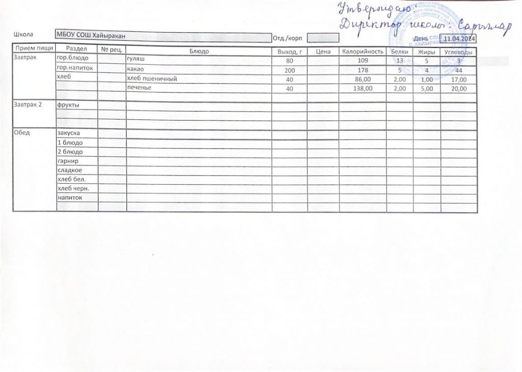 Утвержденное меню на 11 апреля 2024 года