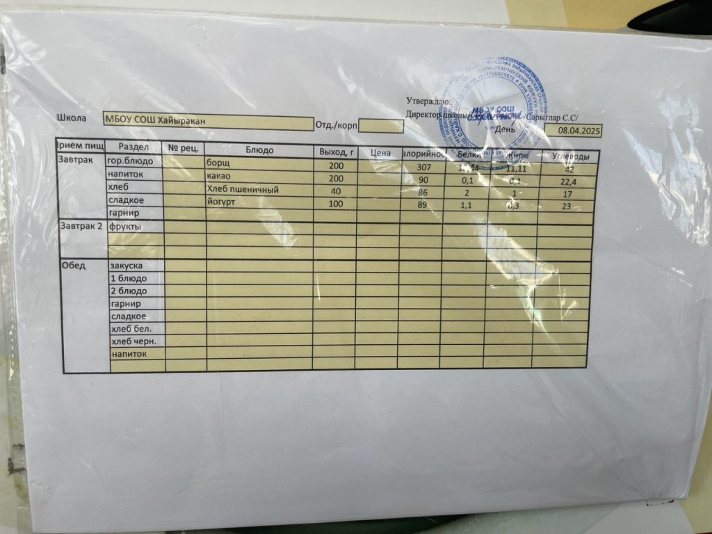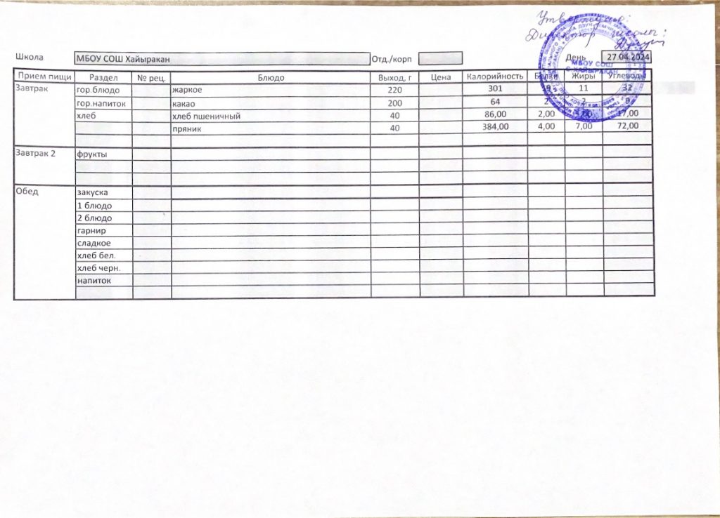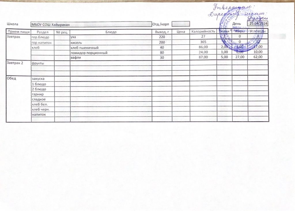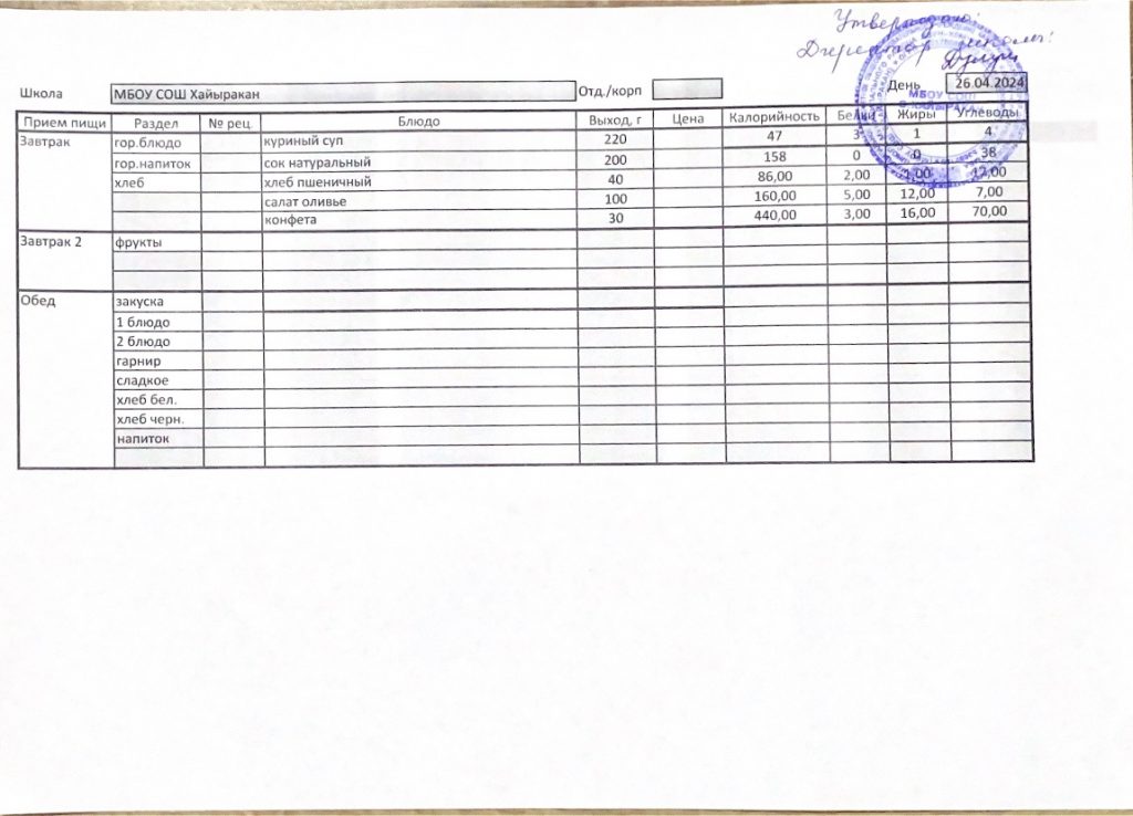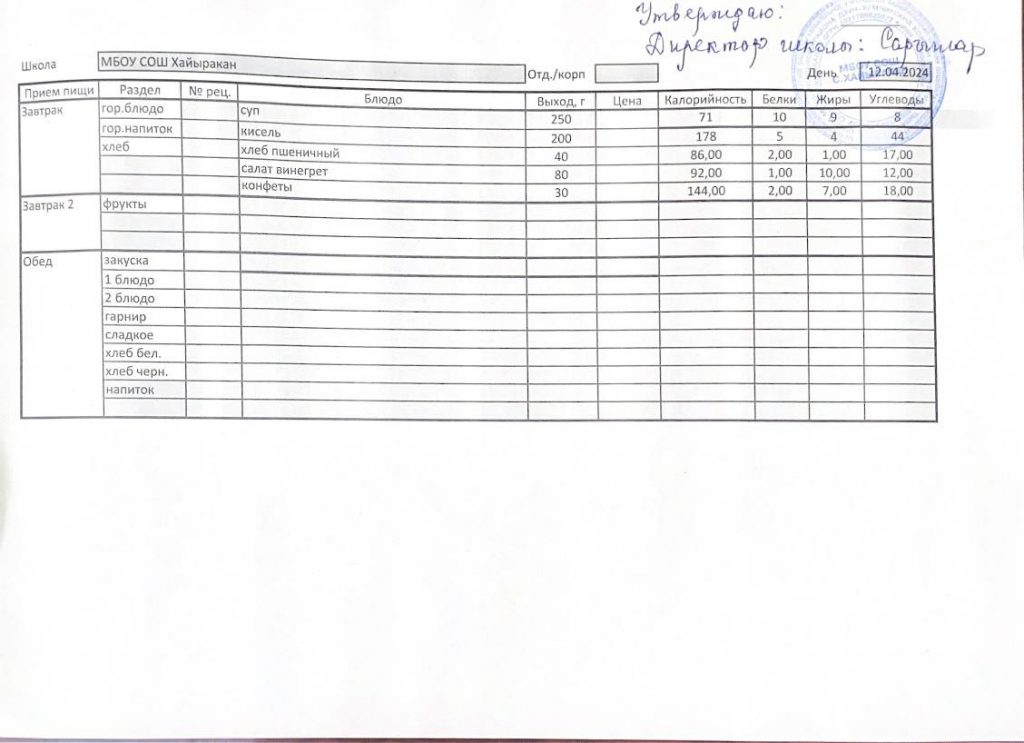 Утвержденное меню на 12 апреля 2024 года