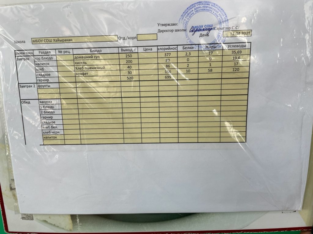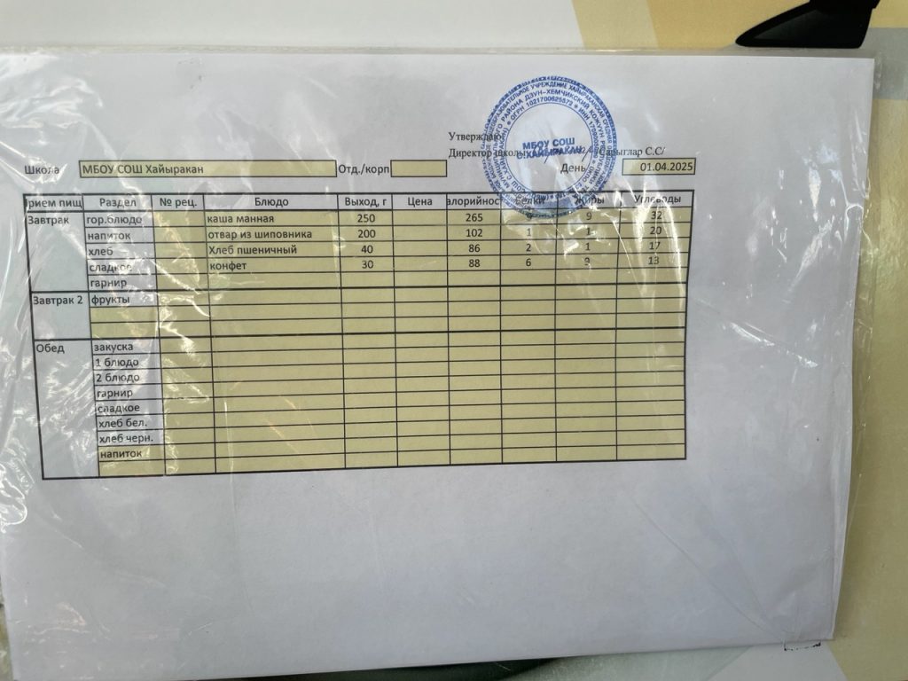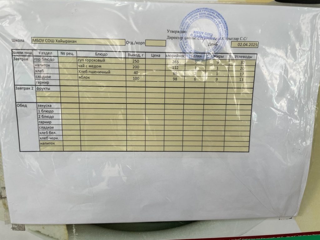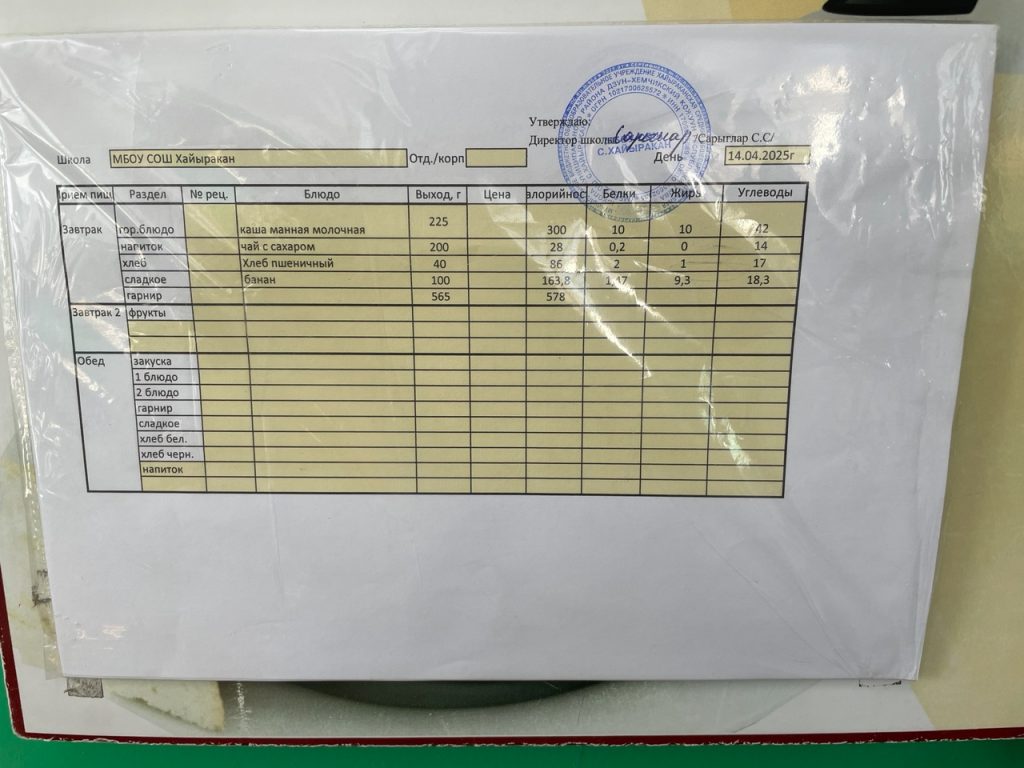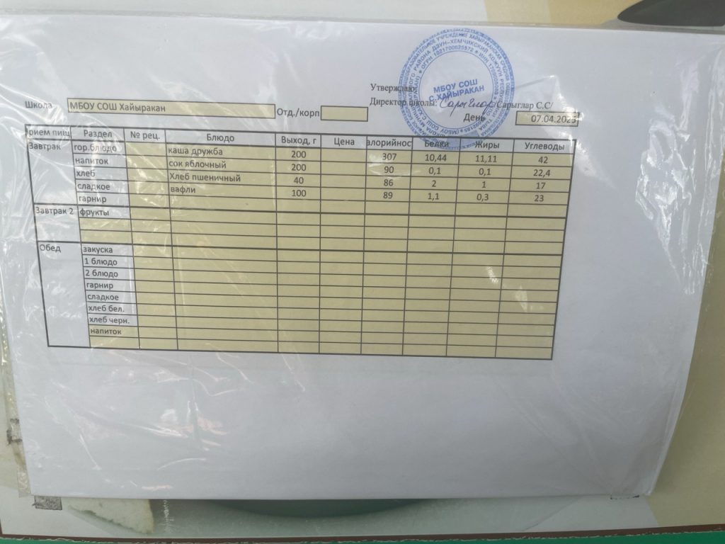 Утвержденное меню на 12 апреля 2024 года