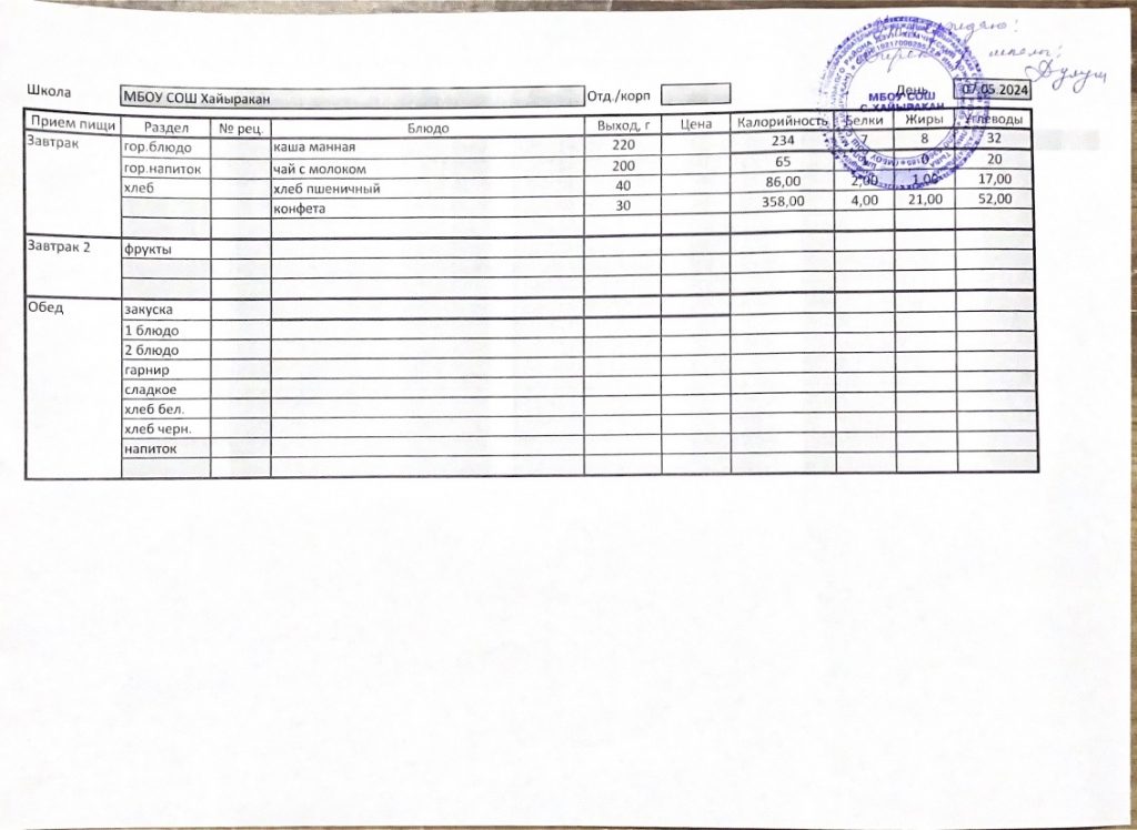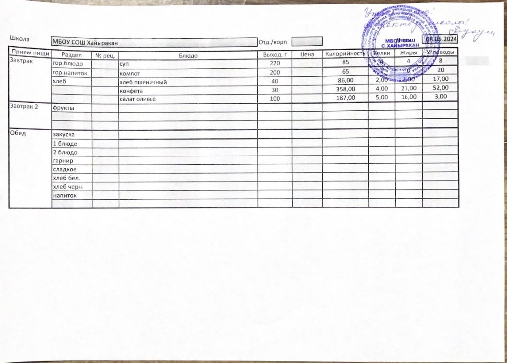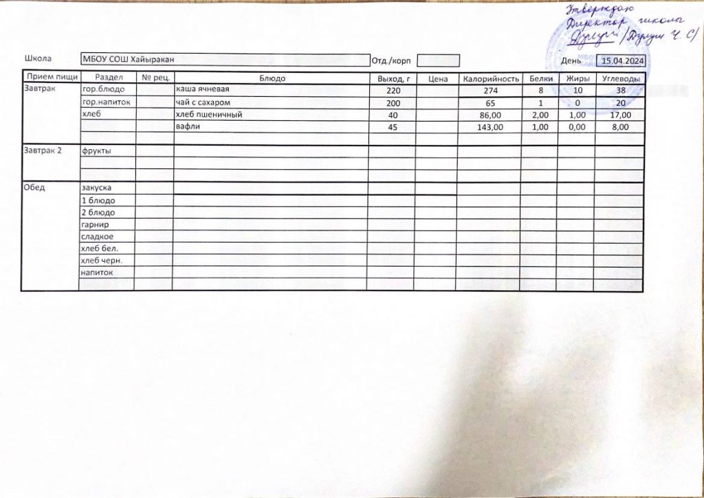 Утвержденное меню на 15 мая 2024 года