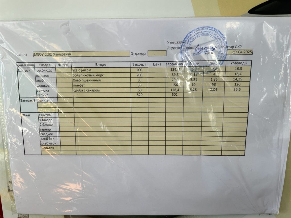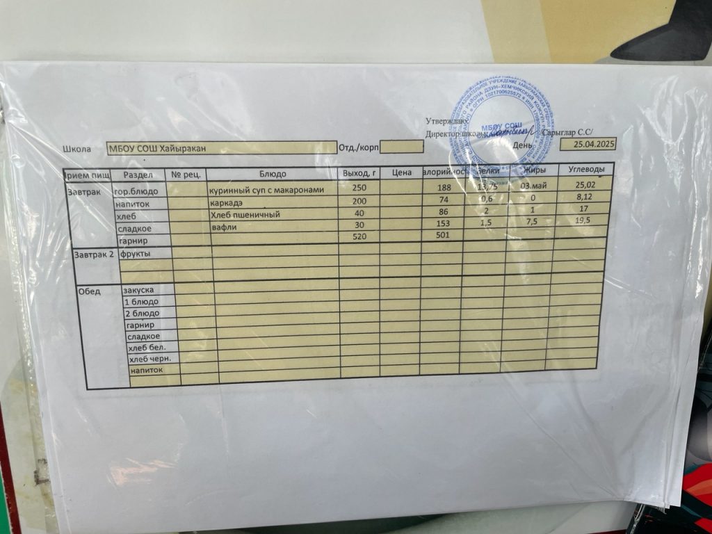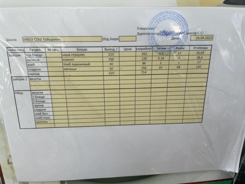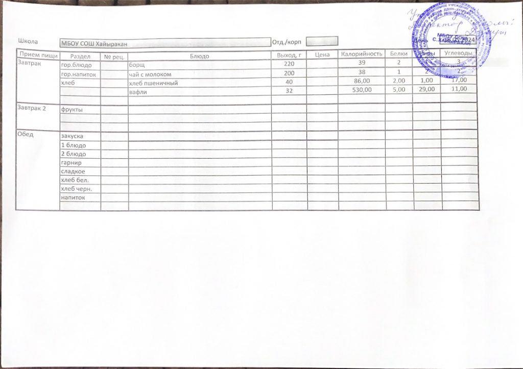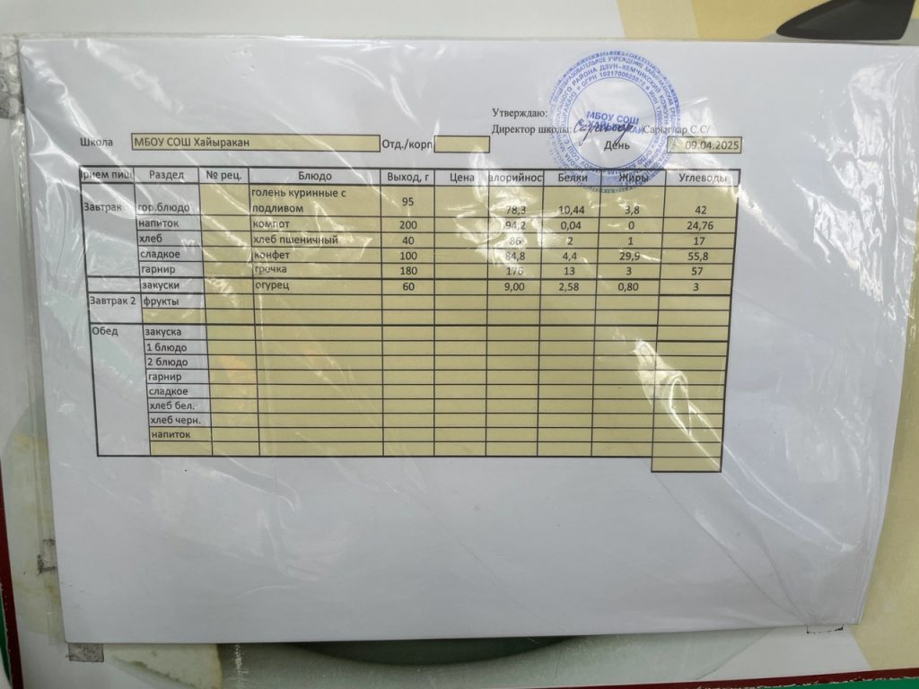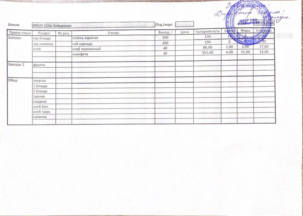 Утвержденное меню на 16 мая 2024 года