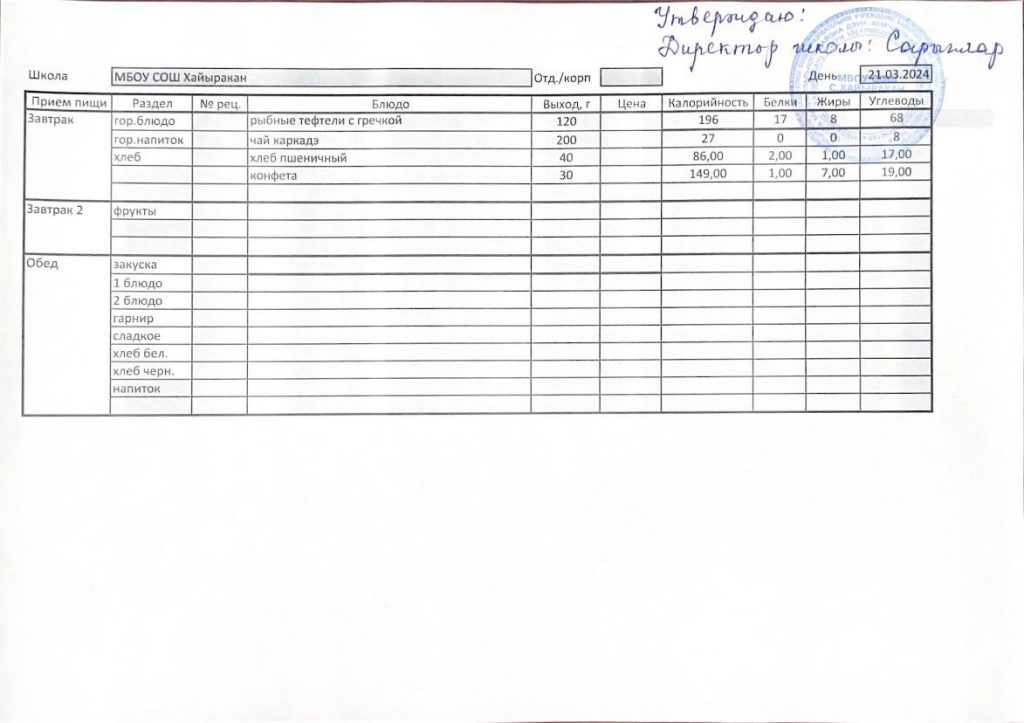 Утвержденное меню на 21 марта 2024 года