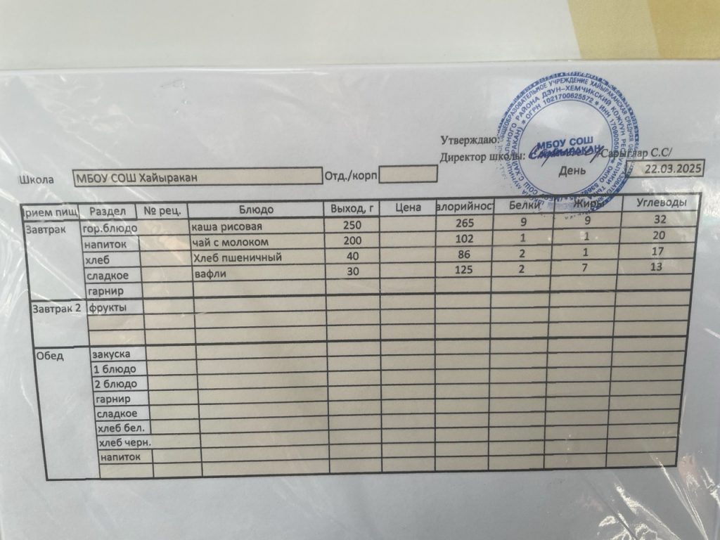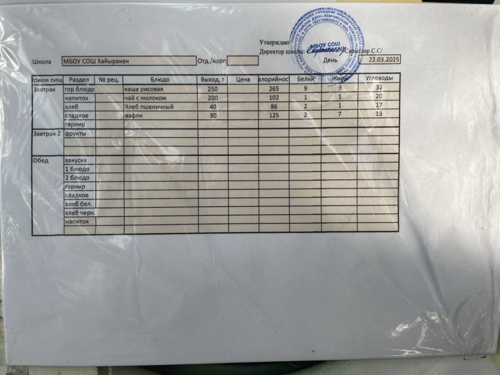 утвержденное меню на 03 март 2025 года